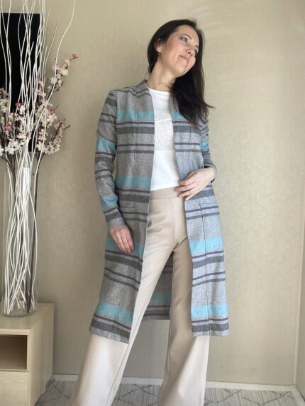 Hall ruuduline peenvillaga kardigan