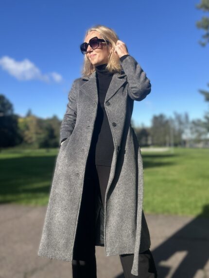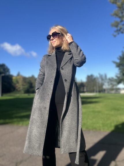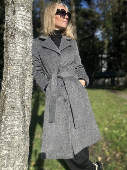 Mantel valmib tellimisel kahe nädala jooksul. Kehtib ka tagastus- ja ümbervahetusvõimalus 14 päeva jooksul! Peenvillasest kangast reväärkraega kevadsügismantel on eksklusiivne! Kui soovid materjali, mis oleks naturaalne, aga ei kortsuks, siis villane on kindlasti kõige parem valik. Kaks taskut. Pealepandav vöö. Mudel on disainitud nii, et kui inimese mõõt on näiteks 38, siis ostes 38 suuruses mantli, on see üsna ümber. Kui soovid mantlile veidi rohkem vabadust ja ka näiteks soojema kampsuni alla panna, soovitame võtta suuruse 40. Hooldus: keemiline puhastus. Modell on 173cm pikk ja kannab mantlit nr 36.