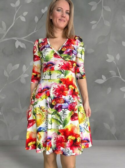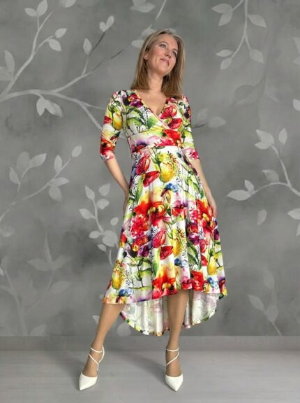 Floral Wrapped Dress with Birds