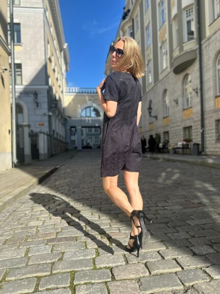 2 side pockets. Maintenance: Gentle machine wash. Fabric: 50% viscose; 50% polyester; Fabric 2: 95% cotton; 5% elastane. Designed and made in Estonia.