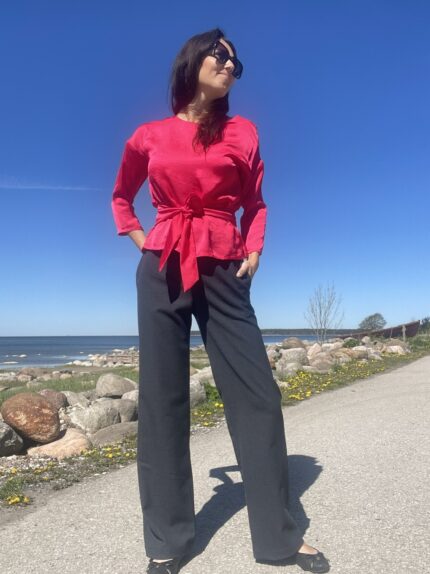 Comfortable stretchy fabric. 2 side pockets. Stretchy fabric makes the trousers comfortable to wear. Maintenance: mashine wash.