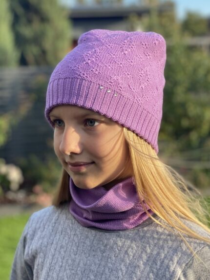 Purple Hat With Swarovsky Cristals, 100% Merino Wool