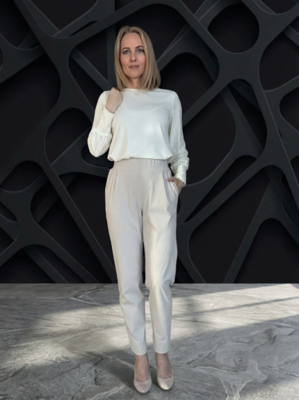 Comfortable stretchy fabric. 2 side pockets. Stretchy fabric makes the trousers comfortable to wear. The trousers ar made of fabric with OEKO-TEX® 100 certification. OEKO-TEX® 100 certification means that fabrics have been tested for harmful substances and are safe for human health. Maintenance: mashine wash. Models hight on 173cm and wears trousers in size 36.