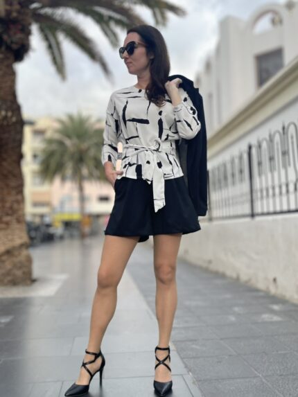 2 side pockets. Linen products are especially suitable for summer period. They feel cool when wearing. Linen material helps to protect you from sun’s negative effect while let’s you enjoy the positive side of sun. The material does not stain easily and it dries very fast. Maintenance: handwash. The model’s height is 173cm. Wears trousers number 36.
