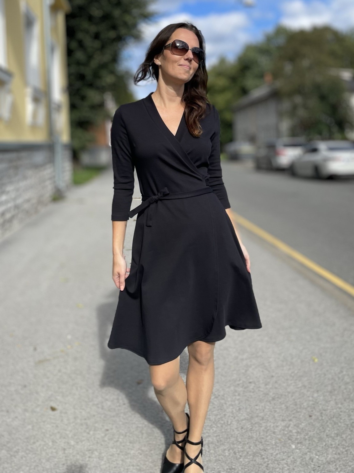 Stretch fabric makes the dress comfortable to wear. Sleeves. 2 pockets.