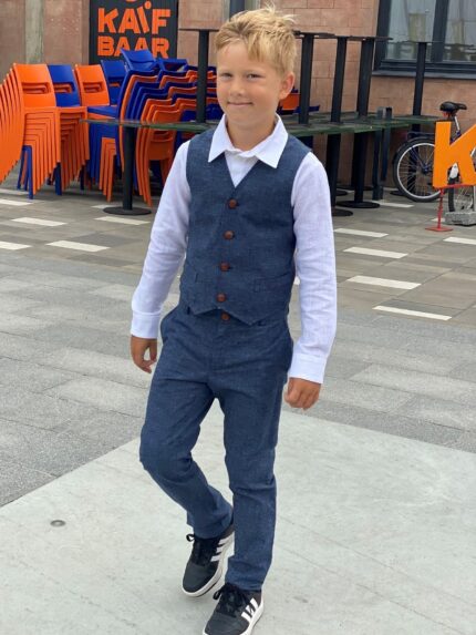 Navy Blue Trousers and Vest With Linen
