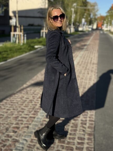 Mantel on valminud luksuslikust peenvillasest kangast, millele lisab pehmust eksklusiivne mohäär. Peenvill annab loomuliku soojustunde, hingavuse ja pehmuse, mohäär lisab luksuslikku siidisust ja erakordset soojust hoidvat omadust. Polüamiid tagab vastupidavuse ja aitab mantlil hoida oma kaunist vormi ka ajapikku. Kaks taskut. Pealepandav vöö. Hooldus: keemiline puhastus. Mudel on disainitud nii, et kui inimese mõõt on näiteks 38, siis ostes 38 suuruses mantli, on see üsna ümber. Kui soovid mantlile veidi rohkem vabadust ja ka näiteks soojema kampsuni alla panna, soovitame võtta suuruse 40. Modell on 173cm pikk ja kannab mantlit nr 38.