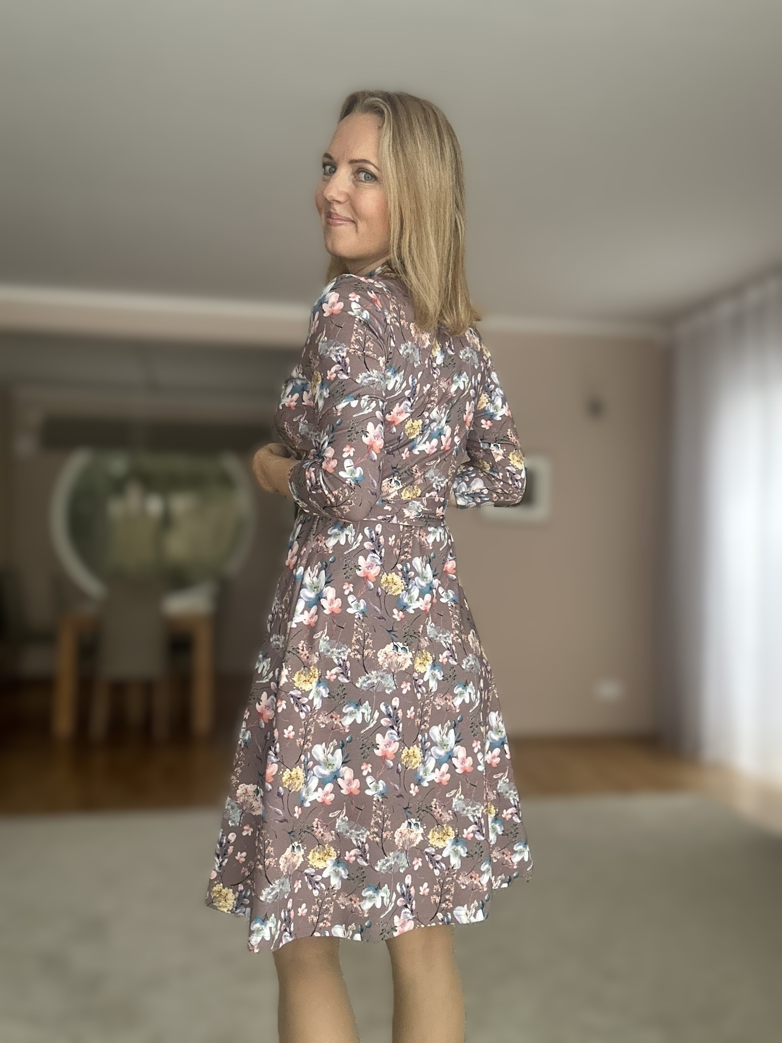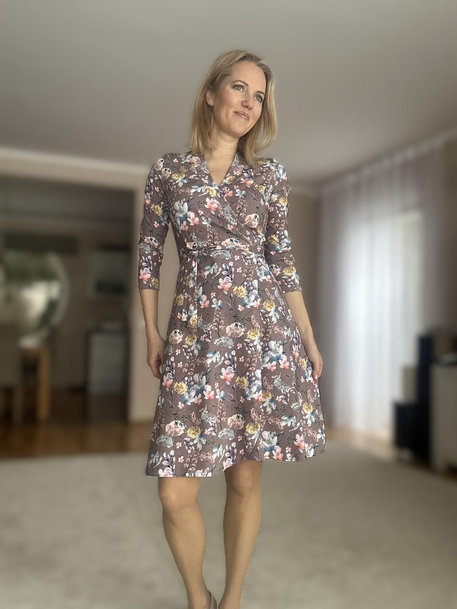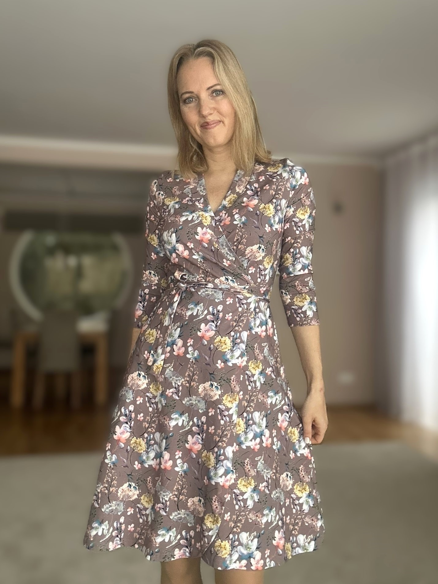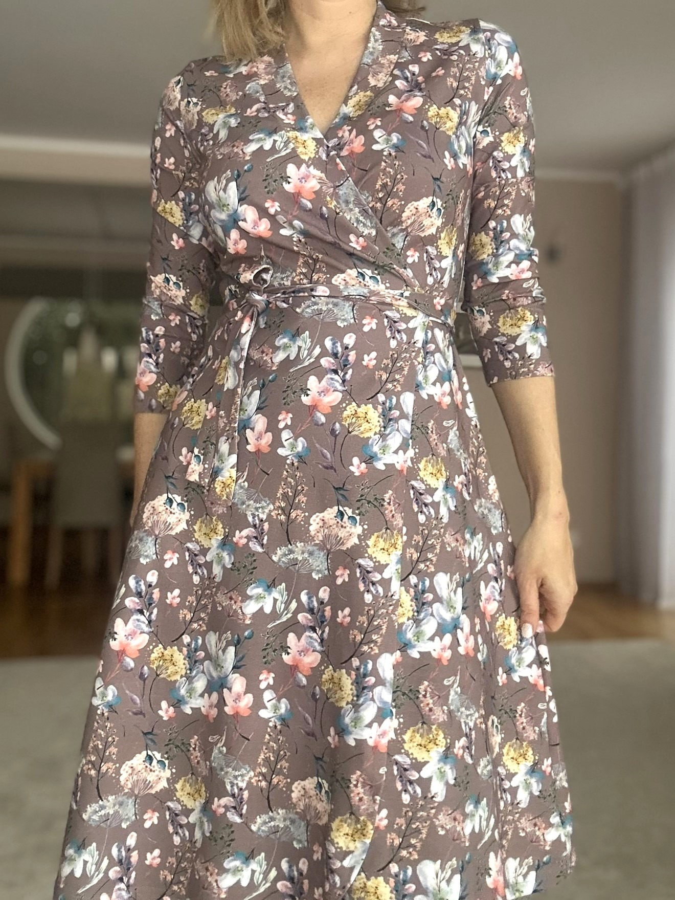 Veniv kangas teeb kandmise mugavaks. Kolmveerandvarrukad – mis annavad võimaluse kanda kleiti nii soojemal kui ka jahedamal ajal. Kleidil on kaks taskut.