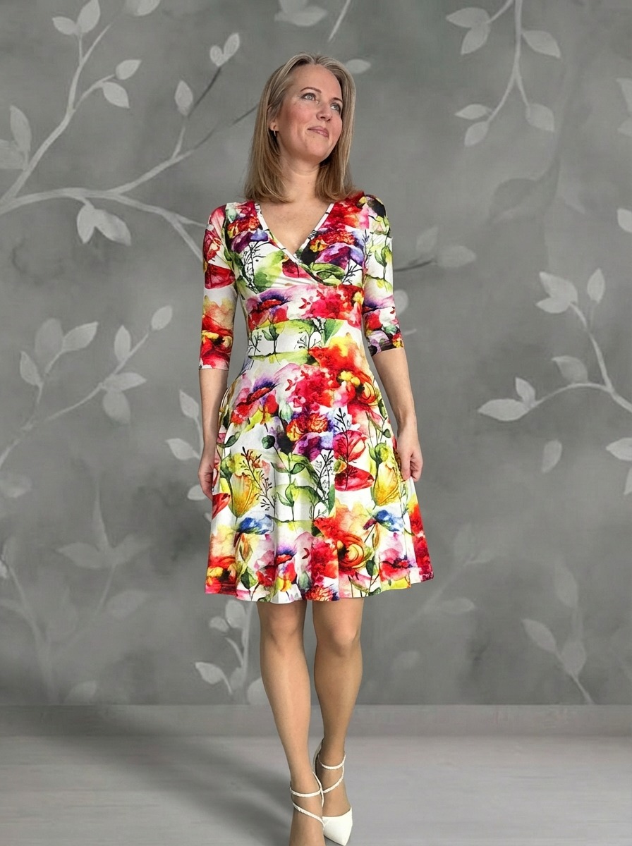 Materjal, mida on kerge hooldada. Toodet võid pesta masinas ja soovi korral triikida. Kuigi reeglina ei ole see vajalik, kuna trikotaaž oma olemuselt pigem ei kortsu. Ära pane toodet pesukuivatisse, kuna selle tagajärjel võib toode märkimisväärselt kokku tõmmata. Modell on 173cm pikk ja kannab kleiti suuruses 36.
