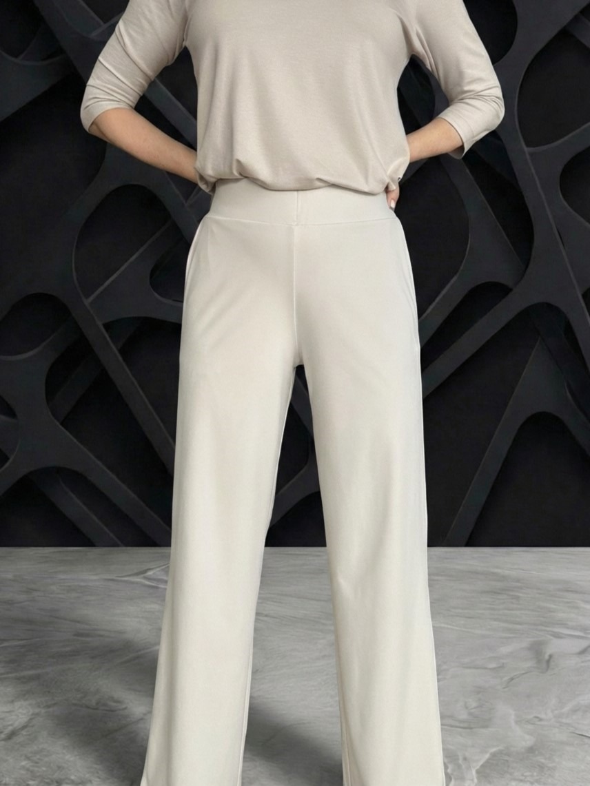 Helerohelised kreemikad püksid laia säärega, 100% peenvill