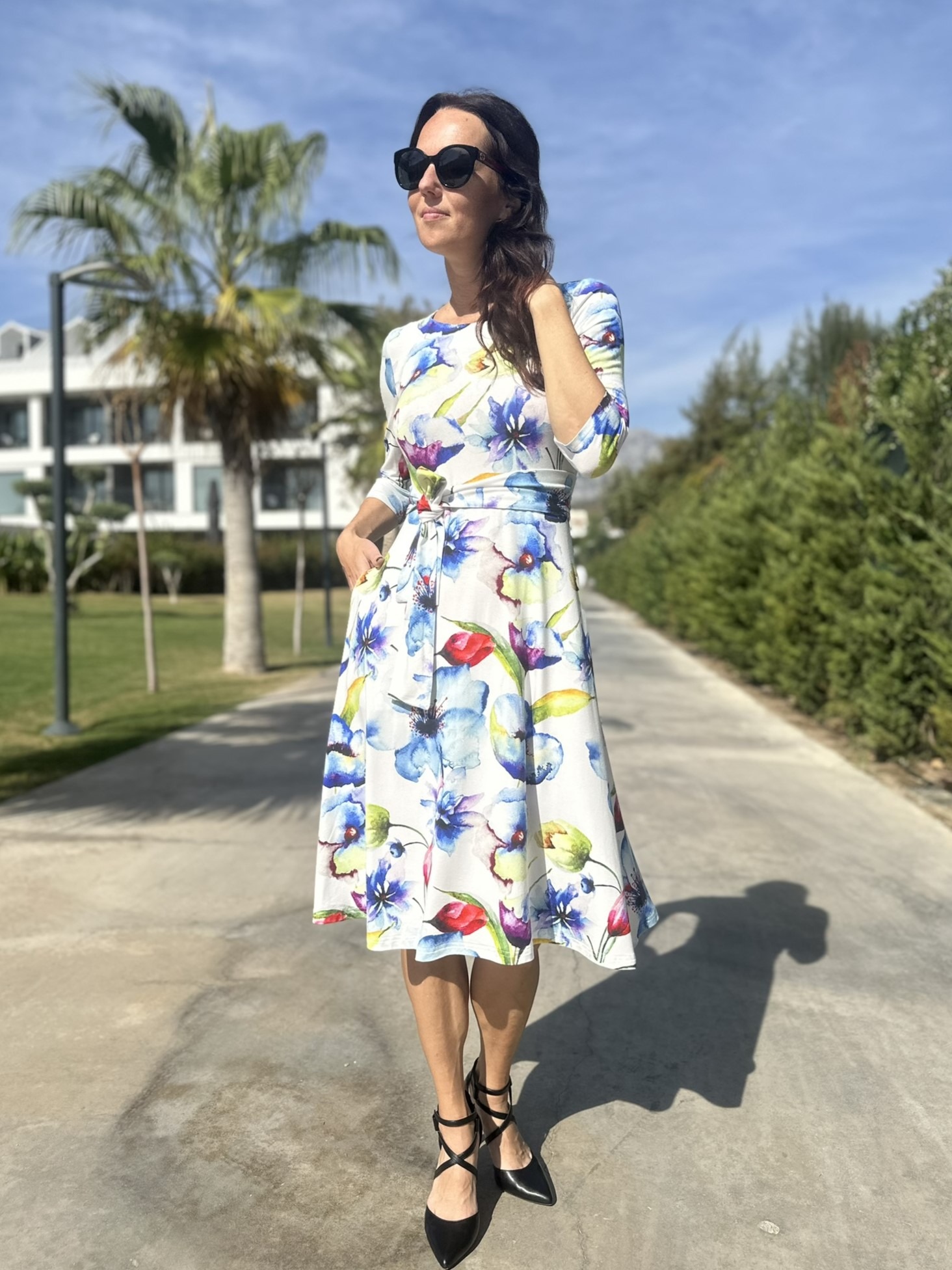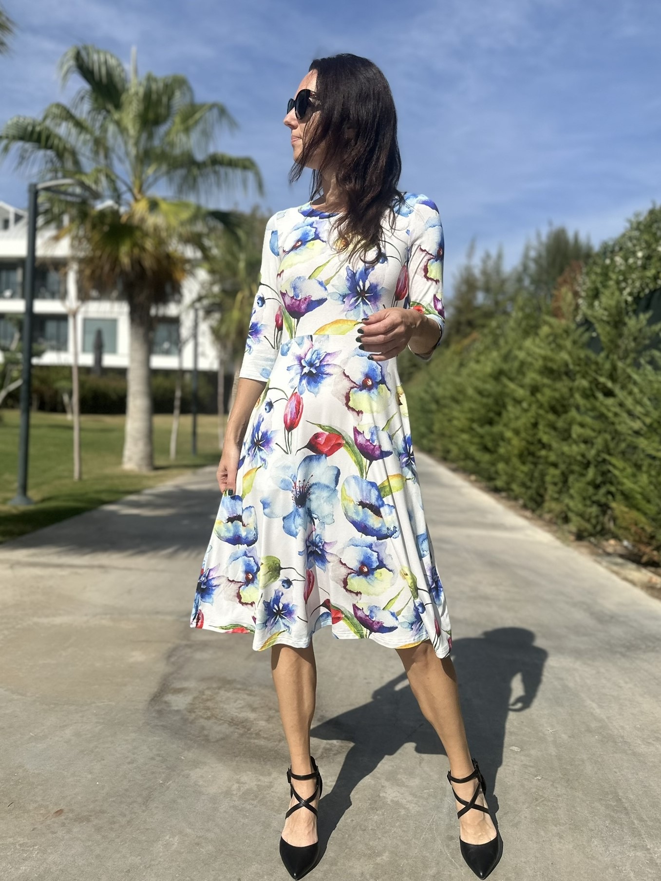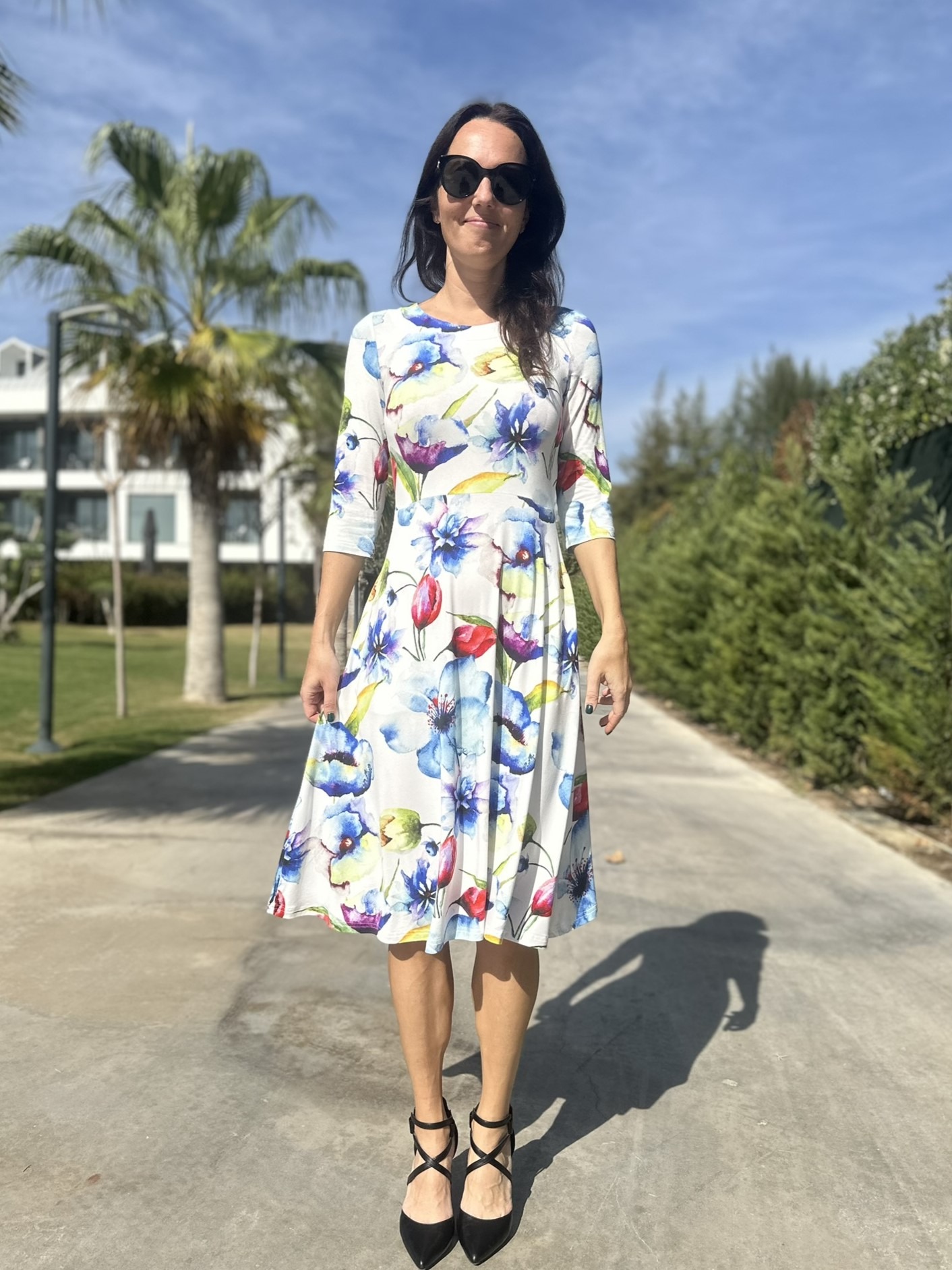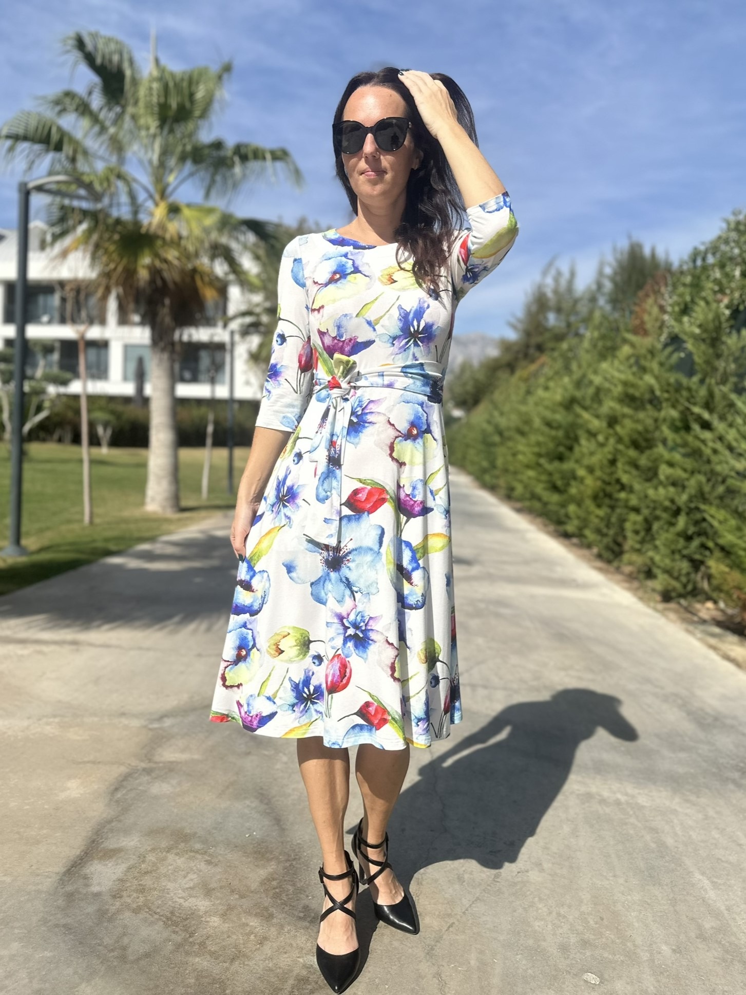 Materjal, mida on kerge hooldada. Toodet võid pesta masinas ja soovi korral triikida. Kuigi reeglina ei ole see vajalik, kuna trikotaaž oma olemuselt pigem ei kortsu. Ära pane toodet pesukuivatisse, kuna selle tagajärjel võib toode märkimisväärselt kokku tõmmata. Modell on 173cm pikk ja kannab kleiti suuruses 36.