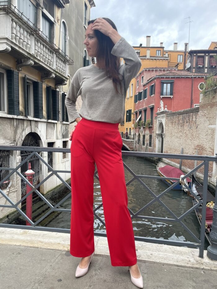 Trendikalt alt laieneva säärega püksid. Kangas on ülipehme ja kaunilt langev. Pükstel on vöökoht mugava kummiga ja venib mõnusasti vastavalt kandja kehakujule. Külgedel kaks suurt taskut. Pehme ja veniv kangas teeb kandmise mugavaks. Püksid on valmistatud kangast, millel on OEKO-TEX® 100 sertifikaat. OEKO-TEX® 100 sertifikaat tähendab, et kangaid on testitud kahjulike ainete suhtes ja need on inimese tervisele kahjutud. Hooldus: masinpesu. Modell on 173cm pikk ja kannab 36 suuruses pükse.