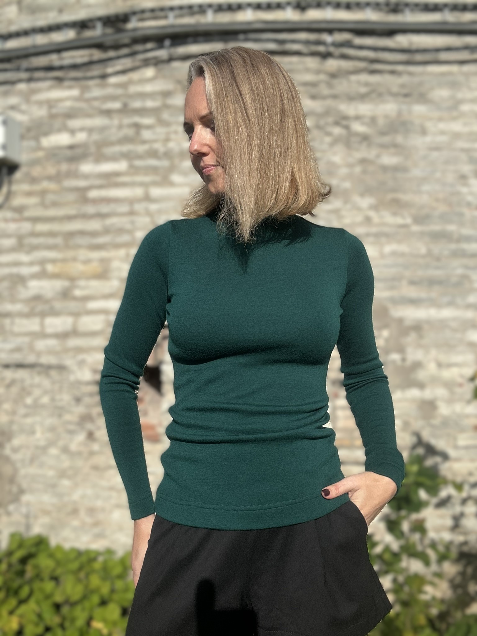 Roheline kõrge kaelusega polo, 100% meriinovill