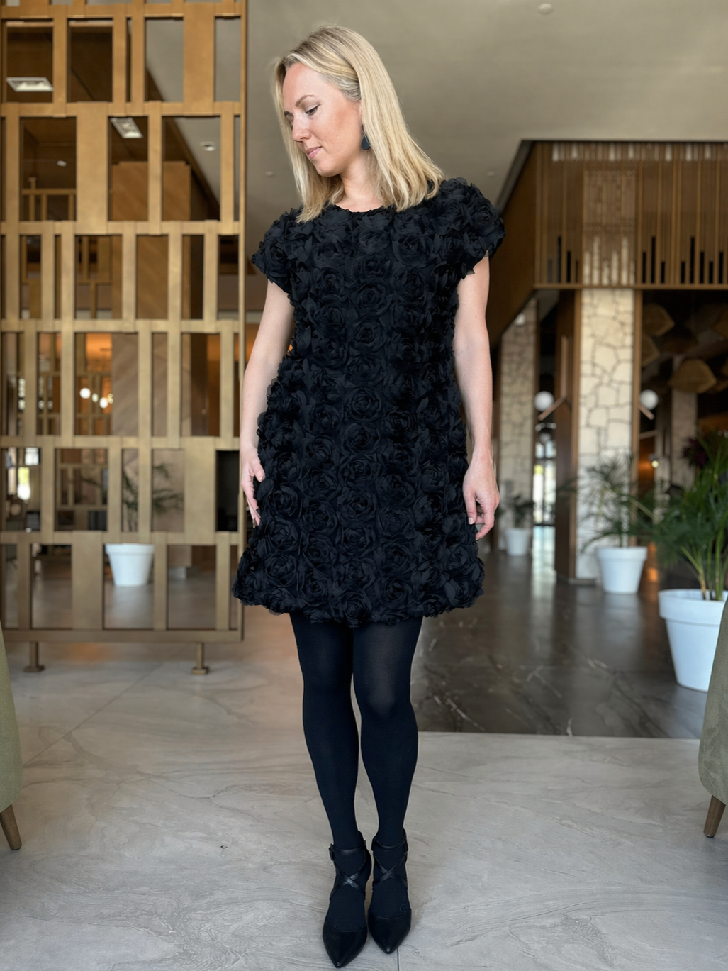 Romantiline lilleline tekstuur muudab kleidi pilkupüüdvaks, kuid samas naiselikult õrnaks. See on ideaalne valik pidulikeks sündmusteks, suvisteks vastuvõttudeks või erilisteks hetkedeks, kus soovid tunda end elegantse ja enesekindlana.