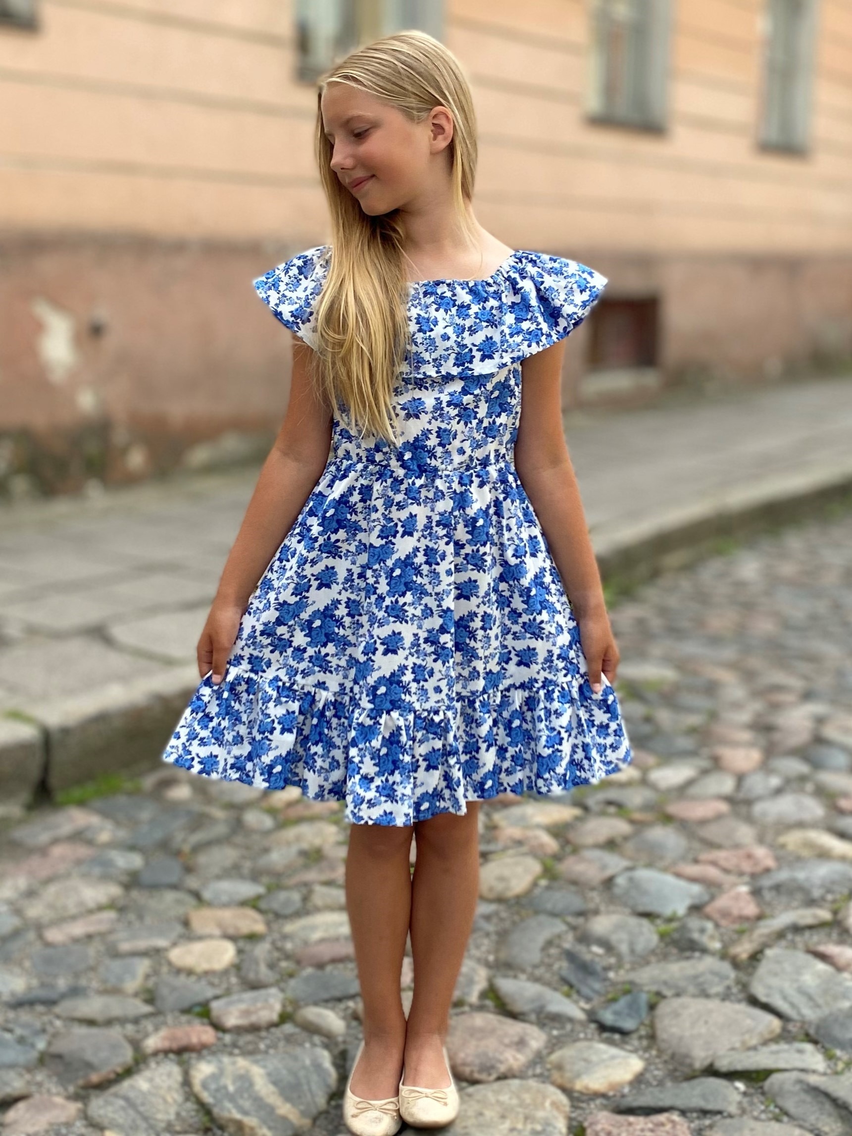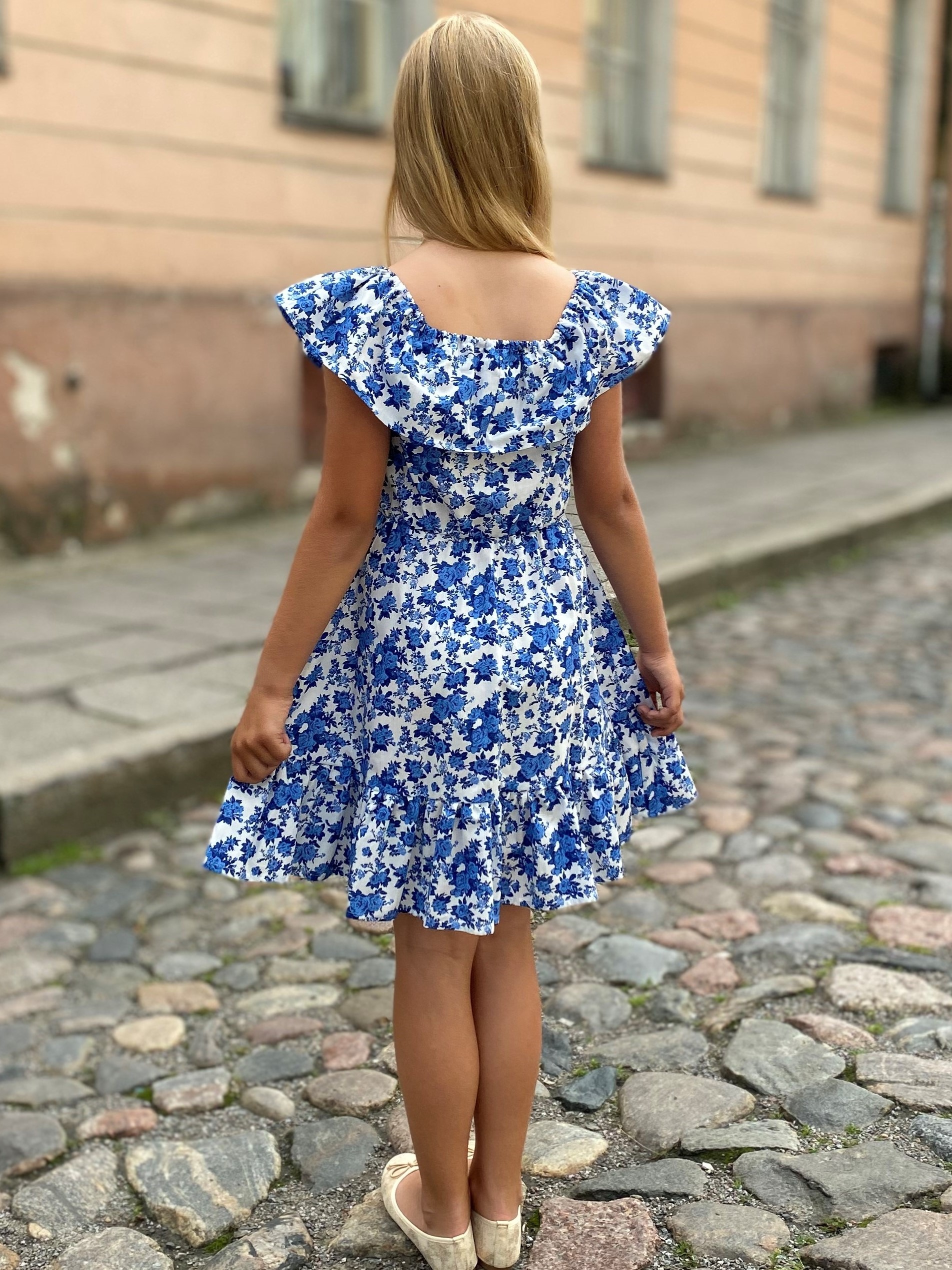 Sinine lillekleit volangidega