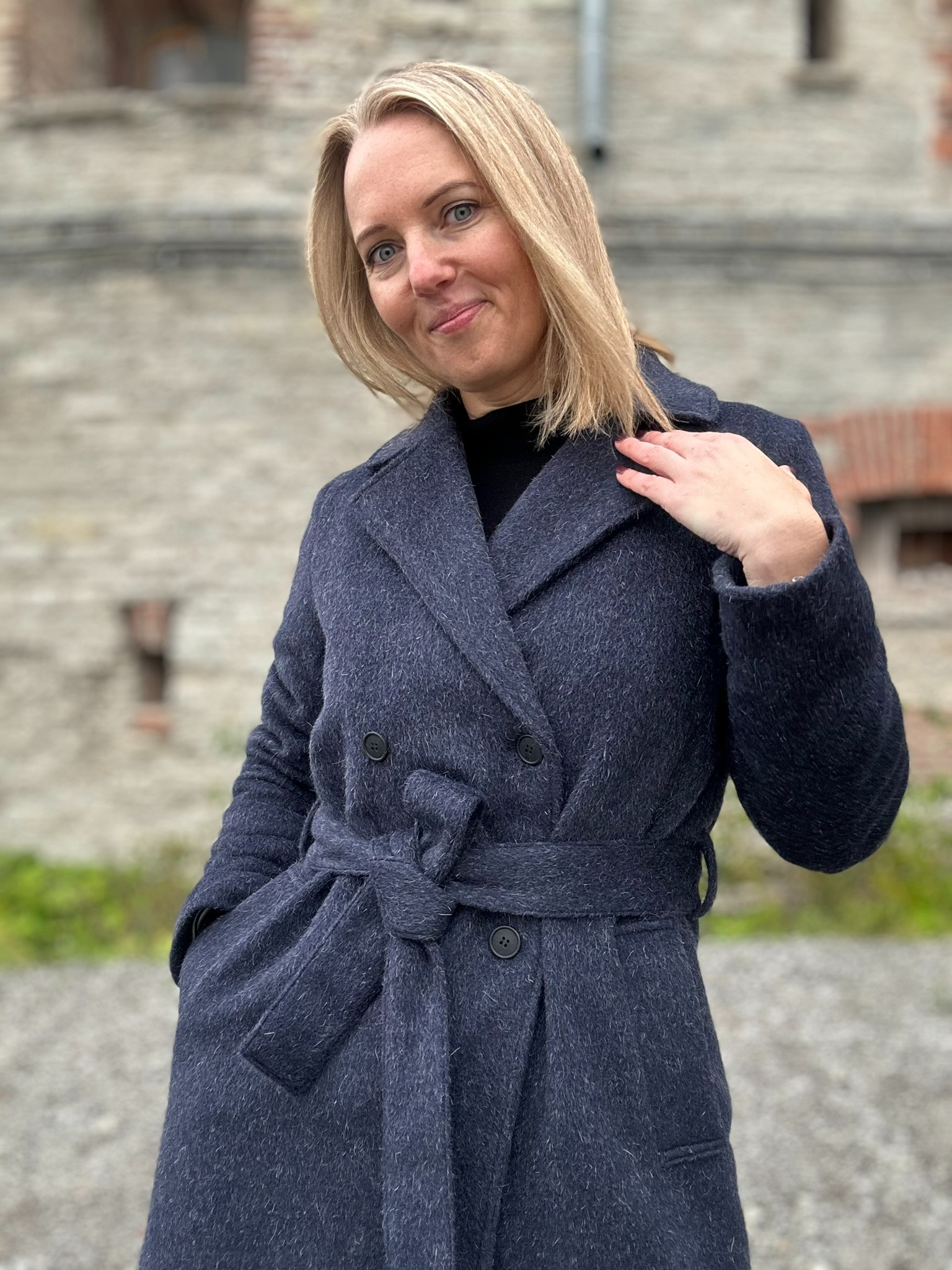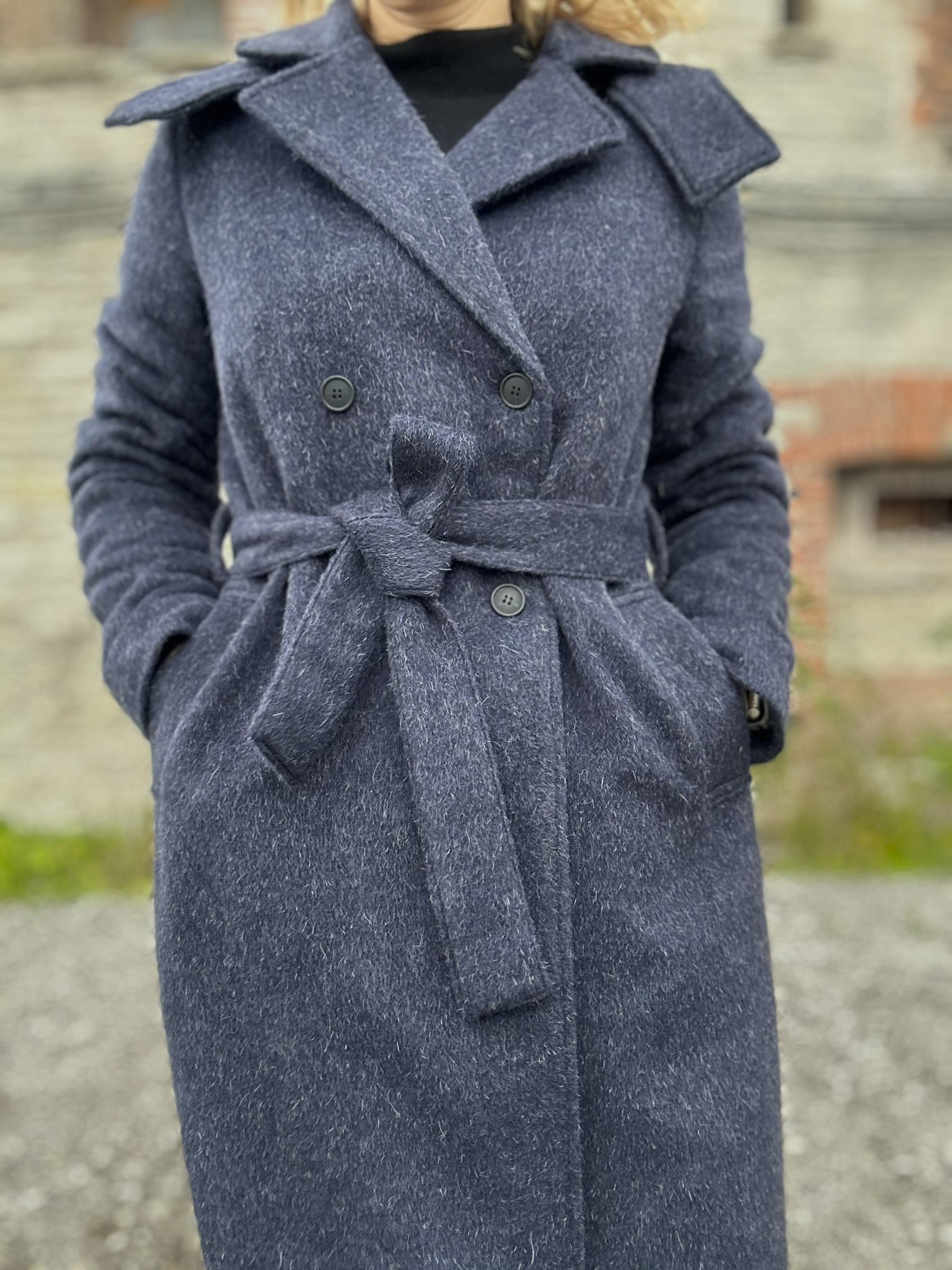 Mantel on valminud luksuslikust peenvillasest kangast, millele lisab pehmust eksklusiivne mohäär. Peenvill annab loomuliku soojustunde, hingavuse ja pehmuse, mohäär lisab luksuslikku siidisust ja erakordset soojust hoidvat omadust. Polüamiid tagab vastupidavuse ja aitab mantlil hoida oma kaunist vormi ka ajapikku. Soojust lisab vatiinikiht. Mantlil oleme kasutanud revolutsioonilist 3M thinsulate vatiini, mis on soe, aga samas kerge ja õhuke. Vatiin hoiab väga hästi kehasoojust, samas tõrjudes eemale niiskuse. Klassikaline reväärkrae, mille saad üles keerata, kui külm hakkab. Pealepandav vöö. Eemaldatav kapuuts! Keemiline puhastus.