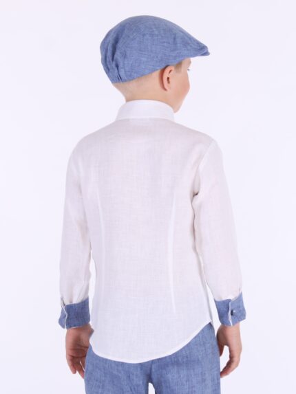 Valge triiksärk, tumesiniste ornamendidetailidega