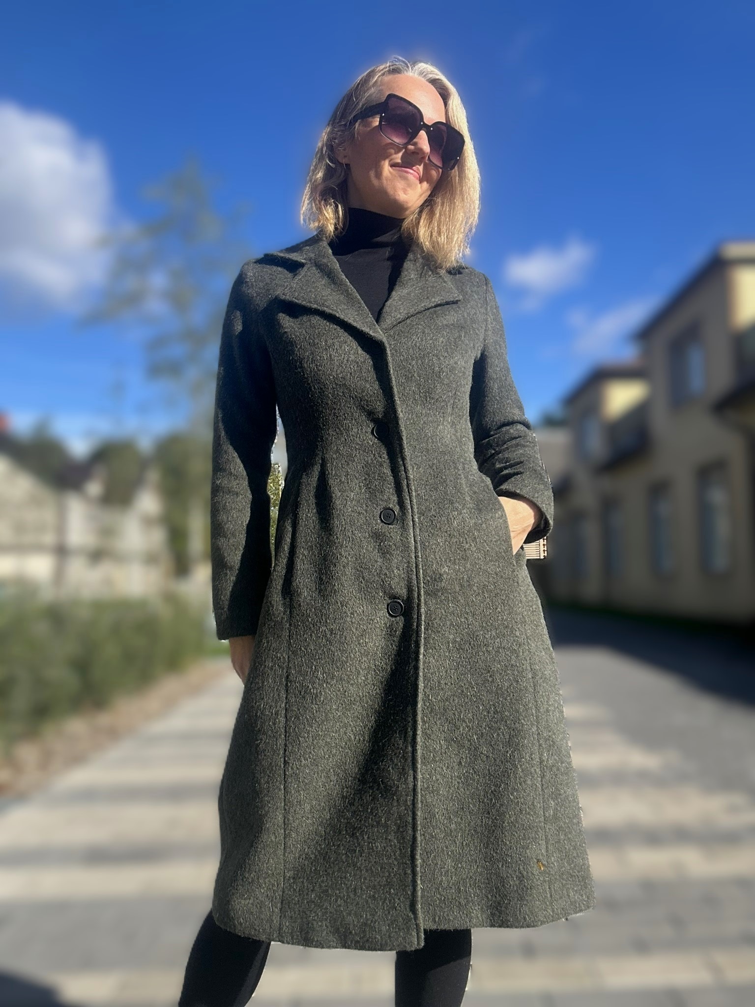 Mantel valmib tellimisel kahe nädala jooksul. Mantlile kehtib ka tagastusvõimalus 14 päeva jooksul! Mantel on valminud luksuslikust peenvillasest kangast, millele lisab pehmust eksklusiivne mohäär. Peenvill annab loomuliku soojustunde, hingavuse ja pehmuse, mohäär lisab luksuslikku siidisust ja erakordset soojust hoidvat omadust. Polüamiid tagab vastupidavuse ja aitab mantlil hoida oma kaunist vormi ka ajapikku. Kaks taskut. Pealepandav vöö. Hooldus: keemiline puhastus. Mudel on disainitud nii, et kui inimese mõõt on näiteks 38, siis ostes 38 suuruses mantli, on see üsna ümber. Kui soovid mantlile veidi rohkem vabadust ja ka näiteks soojema kampsuni alla panna, soovitame võtta suuruse 40. Modell on 173cm pikk ja kannab mantlit nr 36.